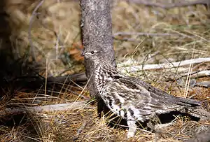 The Ruffed Grouse, Bonasa umbellus, is a medium-sized grouse occurring in forests across Canada and the Appalachian and northern United States including Alaska. They are non-migratory.
