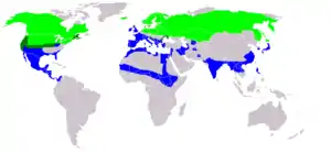 The range maps presented here are color-coded, with yellow indicating the summer range, blue indicating the winter range, and green indicating the year-round range. Some of the range maps do not follow this color code, but it is not difficult to decode them.