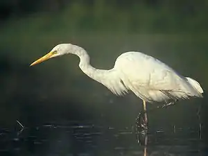 The Great Egret Ardea alba, also known as the Great White Egret, White Heron, or Common Egret, is a wading egret, found in most of the tropical and warmer temperate parts of the world, although it is very local in southern Europe and Asia. It is called Kōtuku in New Zealand. It should not be confused with the Great White Heron, which is a white morph of the Great Blue Heron found in Florida.