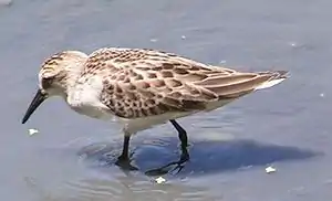 The Semipalmated Sandpiper, Calidris or Erolia pusilla, is a very small shorebird.
