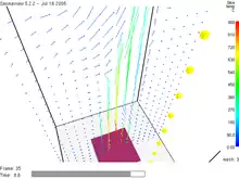 Tracer particles can be injected into the flow field from vents or obstacles, as shown in Section [sec:Injecting-Lagrangian-particles], and then observed in Smokeview. Streak lines can be drawn, too.