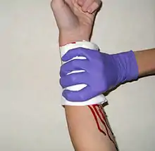 Where an articulate area of the body is wounded (such as the arms or hands), it is important to consider the position of the area in keeping pressure on the wound. For example, if a hand is cut 'across' from the thumb to halfway across the palm, the wound can be closed with direct pressure by simply clasping the victim's hand shut. However, if the hand was wounded from between the two middle fingers down to the wrist, closing the hand would have the effect of opening the wound, and so the victim should have their hand kept flat.