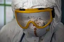 - Apron or gown - Disposable aprons are common items in larger kits, and help protect the rescuers clothing from contamination.