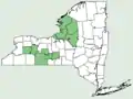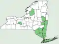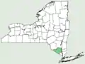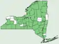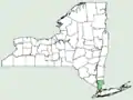 The Ebenaceae (ebony family) is primarily a tropical and warmer-temperate family of trees and shrubs. Its only species reported outside of cultivation in New York is the American persimmon tree, which consists mainly of escapes from cultivation. It is believed that the only native persimmon trees in the state are on Staten Island (Richmond County) and Long Island (Nassau and Suffolk Counties).[1][2]