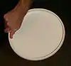 - Grip: The fingers of the hand are spread out over the top, with the thumb under the disc and perpendicular to the rim. For greater control, extend the index finger along the rim, as in the control grip for the forehand.
