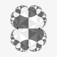 - Checkerboard in Hyperbolic tilings by User:Tamfang : images and Python code