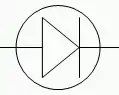 A diode is a device that allows current to flow in one direction but not in the reverse direction. Its circuit symbol consists of a triangle pointing in the direction that current is allowed to flow with a line at the point, inside a circle. Diodes are useful for stopping current flowing in the "wrong" direction.