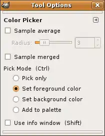 - Sample merged - set whether to merge the colour from all visible layers and pick that (i.e. to pick the colour as seen).