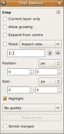 - Position - placement of the selection to crop