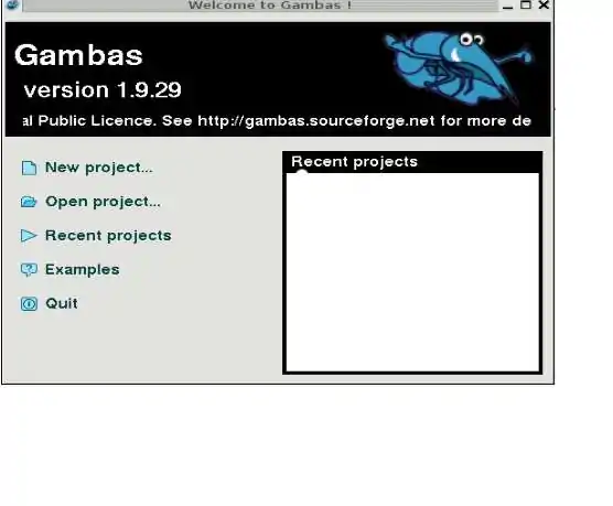 As you noticed, quite a few things happened. A new Form (Window) was created, and some other new things showed up. NOTE: In gambas a Window is called a Form. I will use the term Form(s) in the rest of the book.