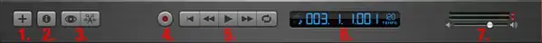- With this slider you can change the scale of the plane under number 3. Slide it to the right to see the loops and recordings in detail and to the left for a very global view of your song.