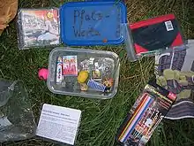 Geocaching is an outdoor treasure-hunting game in which the participants use a Global Positioning System (GPS) receiver or other navigational techniques to hide and seek containers (called "geocaches" or "caches") anywhere in the world. A typical cache is a small waterproof container containing a logbook, pen and "treasure", usually toys or trinkets of little monetary value.