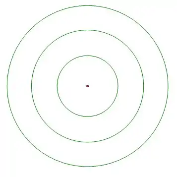 Concentric Circles share the same center, axis or origin with one inside the other. Concentric Circles do not necessarily have the same radius.
