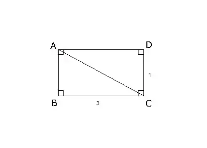 below is such a Rectangle with the diagonal drawn. We shall name the vertices A, B, C, D. The diagonal is called AC because the 2 endpoints are A and C. The 2 triangles are ABC and ADC.
