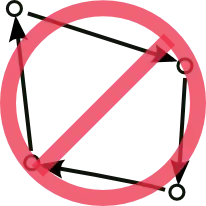 - Acyclic means that, if you start from any point and traverse edges in the direction of the arrows, you can never get back to your starting point, no matter what choice you make at any branch. No child can ever be a (direct or indirect) parent of itself!