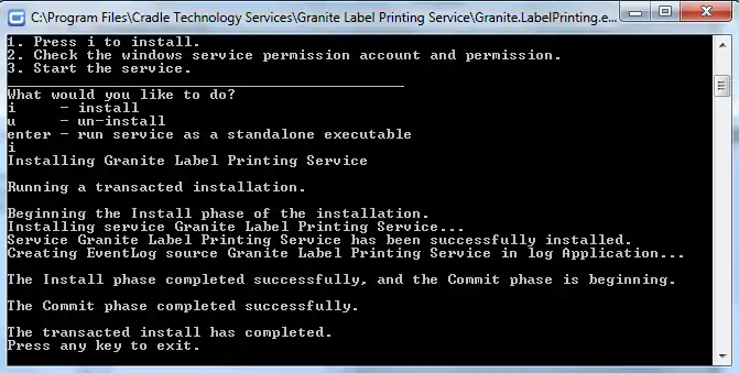 - The service name will be Granite Label Printing Service