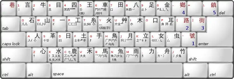 As you can see on the image above, Dayi has more than one component bound to the keys (for example the key "6" has 車,門,片,鬥,甫,爿,丱,丬 and some more). This makes Dayi harder to learn, but the creators tried to place them in the logical way. Both the placement and memorization hints will be covered in this guide.