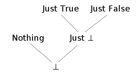 Furthermore: {Just True} {Just False} \ / \ / {Nothing} {Just True, Just False} \ / \ / ⊥ = {Nothing, Just True, Just False} excludes but perhaps we'd be benefited if we could say data powerset Writer a b = Writer a b and get: ∀x y.Writer x y / \ / \ ∀x.Writer x ⊥ ∀y.Writer ⊥ y \ / \ / Writer ⊥ ⊥ where |