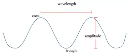 Waves can be measured by their amplitude, a distance measured vertically from the crest (the top of the wave) to the trough (the bottom of the wave). They can also be measured by their wavelength, which is the horizontal distance between crests (Figure 14.8). When wind blows across the water surface, energy is transferred to the water. The transfer of that energy may create tiny ripples that disappear when the wind dies down, or it may create larger waves that continue until they reach the shore. Most waves reach the shore.