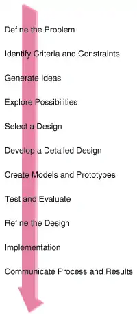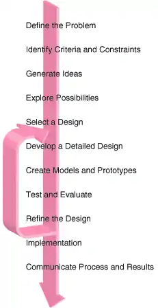 Define the problem. In the problem definition step, the needs of potential customers are investigated; potential competitors are identified and their market positions are characterized; constraints imposed by government regulations or technological limitations are identified; and constraints on the design effort such as available personnel, time, and money are established. The problem definition process results in a clear understanding of the scope of the design project and the resources available to solve the design problem. This understanding is often expressed in a problem statement. This understanding is also expressed in the form of criteria and constraints. Identify criteria and constraints. Criteria and constraints are used to evaluate the quality of a design. Constraints describe conditions that must be met by the design and design process; a design must meet all constraints. Criteria are measurable values that can be used to compare several designs and determine which is better. Generate ideas. Once criteria and constraints are identified, the design team generates ideas for designs. These ideas come from many different sources; these include existing products (including competitors' products), brainstorming and other creative activities, and market and technical research. Ideas are combined to generate potential designs; at this stage, designs are concepts without a significant level of detail. Explore possibilities. After potential designs are generated, they are explored to understand their characteristics and likely advantages and disadvantages. Select a design concept. Potential designs are evaluated relative to the constraints and criteria, and one or more is selected to be designed in detail and prototyped. This selection is made using a structured process that requires the constraints to be met and chooses the best design according to the criteria. Develop a detailed design. The selected design is developed in more detail. The design architecture is established by identifying physical and functional chunks. Shapes and dimensions are determined, materials and fabrication processes are selected, and product components are identified. The design is developed in enough detail that prototypes and models of the design can be made. Create models and prototypes. One or more prototypes are typically implemented to characterize various aspects of the design. Prototypes may be physical models of the design in which dimensions, materials, and fabrication processes emulate important aspects of the design. Increasingly, prototypes are implemented using computer modeling software that simulates mechanical, electrical, and other characteristics of the product. Test and evaluate. Prototypes are tested to see whether the design meets all constraints and performs acceptably relative to the criteria. Refine the design. Testing and evaluation may reveal weaknesses of the design or indicate ways in which the design may be improved. At this point, the design may be refined to better meet the criteria and constraints. Sometimes, testing and evaluation show that a design will not work, so that a different design concept must be selected; in this case, the process goes back to the "Select a design concept" step. Implementation. Depending on the context, the design is produced or constructed. Communicate process and results. The activities and results of the design process are documented. This documentation is communicated to the appropriate stakeholders in the design. |
