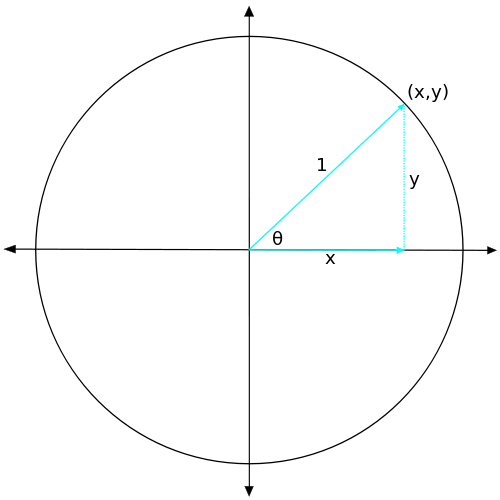 Consider an angle in standard position, such that the point (x, y) on the terminal side of the angle is a point on a circle with radius 1.
