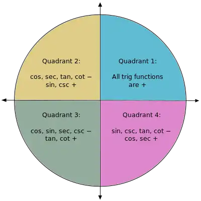 - State the sign of a trig function, given the quadrant in which an angle lies.
