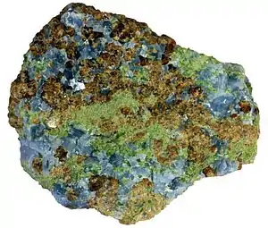 The picture to the right shows a particularly attractive example of skarn, a very distinctive product of metasomatism.