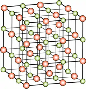 Take for example the mineral halite (more familiar to you as table salt). It has the formula NaCl, because it is formed from units consisting of one atom of sodium (Na) and one atom of chlorine (Cl), and it has a cubic structure as shown in the diagram above. The formula and structure define the mineral.