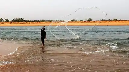 The economy of the Hula community was based on fishing and salt production. In addition to fish, crabs, shrimps and oysters were also obtained. The fish were dried and shipped inland. Although the word hula means sea, they had no interest or technology in sea fishing. The lagoon and river were rich in fish. Sea fishing was not introduced until the 19th century. In some seasons, seawater also extended to the lagoons, when the water became saline, offering sea fish as well. Fishing equipment included canoe nets, fishing nets made of cotton twine and basket weaves, and later various spears, trawl nets and fishing rods, as well as hand fishing.[19]
