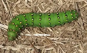 - A Swallowtail caterpillar on a branch of keffir lime tree
