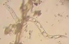 The largest known nematode is Dioctophyma renale, the giant kidney worm, a parasite most commonly found in mink but also in dogs and humans, that can reach up to 103 cm in length.[3]