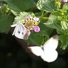 Like its close relative the Large White this is a strong flyer and the British population is increased by continental immigrants in most years. Like other "White" butterflies it hibernates as a pupa. Along with the Large White it is sometimes known as the Cabbage White or Cabbage Butterfly.