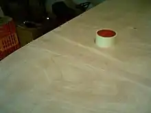 However, for our simple teardrop trailer we will create a moulding over the seam with Bondo. Step one is to apply masking tape on either side of the seam. Once that is done, mix some bondo according to the directions and apply a thick layer (about 1/8" thick) across the seam and over the edges of the masking tape.