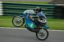 In vehicle acrobatics, a wheelie is a vehicle manoeuvre in which the front wheel or wheels come off the ground due to extreme torque being applied to the rear wheel or wheels. Wheelies are usually associated with bicycles and motorcycles, but can be done with other vehicles, such as cars.