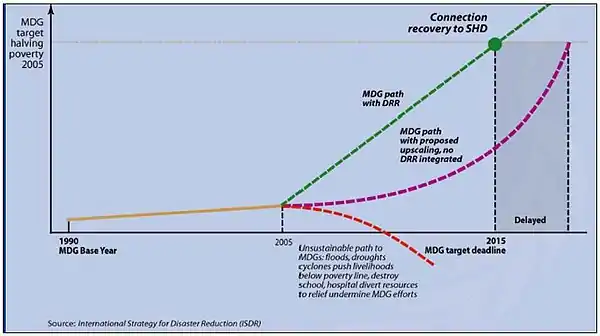 Figure 1: Illustration of how proper Disaster Reduction and Recovery processes can assist in achieving the MDGs by 2015