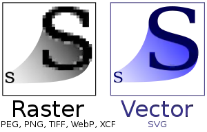 A vector object is composed of edit enabled path(s) and geometrical elements (nodes) based on two dimensional vector (x/y) coordinate values. This is very different from raster (or bitmap) images, which are composed from a grid (bitmap) of colored squares. Bitmaps are inherently "pixellated" when scaled larger (zoomed in), while vectors can be scaled to any size, and won't display any pixelized objects.
