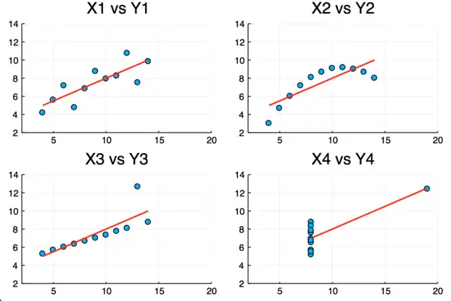 To explore the use of DataFrames.jl, we'll start by examining a well-known statistics dataset called Anscombe's Quartet.