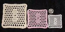 The way a crocheter holds yarn affects the size of the stitches and the overall size and density of a piece. In United States terminology this is called gauge, with reference to the stitches per square inch on a sample swatch. In British terminology this is called tension, with reference to the effect a tight or loose grip. These are two different ways of looking at the same issue.