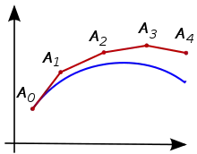 Assume that we know the derivative function of an unknown curve and wants to find the shape of the curve (a function that satisfies a differential equation). We can start from a known point, use the differential equation as as a formula to get the slope of the tangent line to the curve at any point on the curve, and take a small step along that tangent line up to the next point. If the step is small enough, we can expect the next point to be close to the curve. If we pretend that point is still on the curve, the same process can be used to find the next point and so on. Graphically we are using a polynomial to approximate the unknown curve. The gap between the two curves represents the error of the approximation, which can be reduced by shortening the step sizes.
