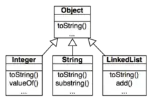 Subtyping polymorphism works because if S is subtype of T, then S meets the contract expected by T. In other words, any property of the type T is also present in its subtype S. In the example above, the function print expects types that "know" how to convert themselves into strings. In Java, any type that has the property toString() has this knowledge. Given that this property is present in the class Object, it is also present in all the other classes that, according to the language's semantics, are subtypes of Object.