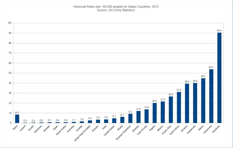 Homicide rates vary substantially around the world. A new, interactive website, Homicide Monitor, provides detailed statistics on homicide rates for dozens of countries around the world.