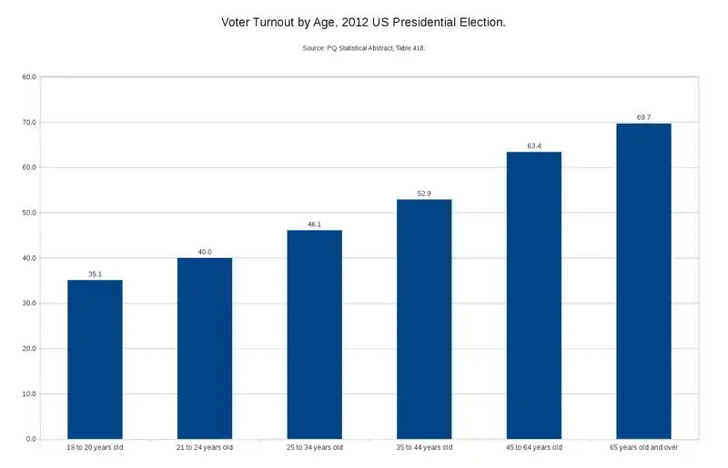 Young people are much less likely to vote than are older people and are less likely to be politicians.[3] This is illustrated for young people in the U.S. in the graph below: