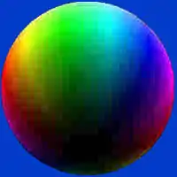However, as not much is won by cosine transform and quantization of the transparency component, these operations should be left out, and the bits for the transparency should be entered in the file in this way: we go along the horizontal lines by turns from left to right and from right to left, so that the pixels are adjacent, and in this sequence of bits we replace each unbroken interval of 0's or 1's by the number of the 0's or 1's (the sum of these numbers is just the width times the height). The resulting sequence of natural numbers is then coded, and can be written in the file before the colour data. By this method, the transparent domain becomes exactly as in the original picture. In the picture to the left the black is made transparent and the picture is laid over a blue background resulting in the picture to the right, and in spite of the very low quality of this picture, the transparent domain is the same:
