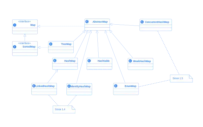 interface as well. It is sometimes also called an Associated Array or a Dictionary. A map defines key value mappings. Implementations of the Map interface do not contain collections of objects. Instead they contain collections of key->value mappings. It can be thought of as an array where the index doesn't need to be an integer.