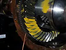 While larger tires give the Jeep Liberty more ground clearance they also regear it to a numerically lower gear. Therefore, it is often a good idea to eventually regear the differentials to a numerically higher gear in order to compensate for the increase in tire size. When changing gear ratios, both the front and rear differentials need to be regeared simultaneously. Generally, as long as the front and rear ratios are within two tenths of each other there won't be any problems. To break in the new gears the Liberty should be run at low speeds for five hundred miles and then the differential lube should be changed. See each axle's specific page for more information on regearing it. To identify your rear axle and gear ratio check the ID tag on the driver's side axle tube near the brake rotor.