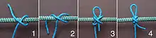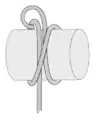 The method shown below is the most basic way to tie the knot. Other methods exist which can be used to tied it in the hand or over the end of the object to be bound.