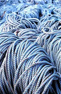 A piece of rope that has a specific purpose is called a line, especially in nautical usage. Examples include clothesline, chalk line, anchor line, stern line, fishing line, and so on.