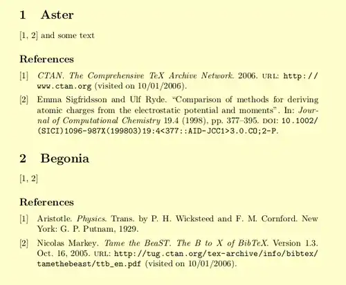 \usepackage[backend=biber,defernumbers=true,refsection=section]{biblatex}