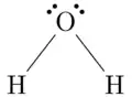 \chemfig{H-[:52.24]\charge{45=\:,135=\:}{O}-[::-104.48]H}