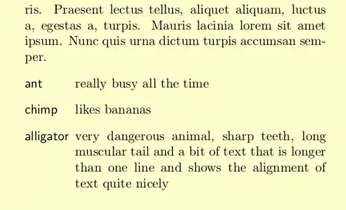 \ListProperties(Hide=100, Hang=true, Progressive=3ex, Style*=-- ,